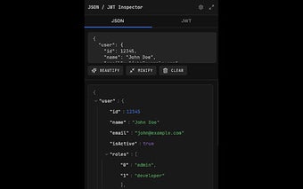 JSON / JWT Inspector est un outil léger conçu pour aider les développeurs à inspecter les tokens JSON et JWT directement dans leur navigateur Chrome. Avec des fonctionnalités telles que la mise en forme JSON et une vue arborescente, cet add-on facilite l'analyse des données. Il permet également de décoder les tokens JWT tout en fournissant des avertissements sur leur date d'expiration, ce qui est essentiel pour la gestion des sessions et la sécurité des applications web.